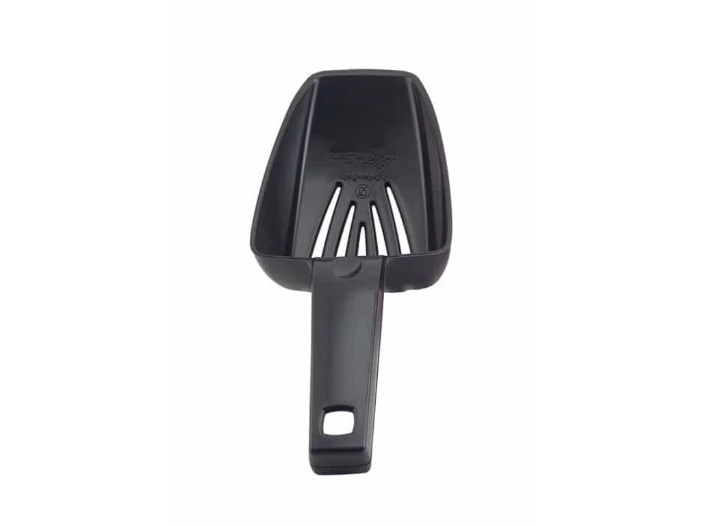 Černá naběračka na led s odtokem – ideální pro mnoho barů, protože velikost odpovídá potřebnému množství ledu do shakeru.